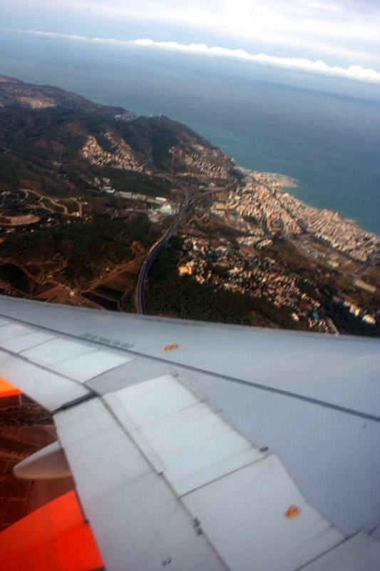 Finalement, on arrive près de l’heure. On va s’enregistrer (pour réaliser encore une fois qu’on aurait pu le faire bien avant), dur de trouver la bonne ligne, tellement pas clair. On réussit quand même, on embarque (oups, oublié de vider bouteilles de plastique d’eau, adieu). On attend en ligne, notre vol easyjet à 120$CAD pour 2, on choisit nos places, tout est beau, on est ensemble, ça décolle (un airbus a319 ou 320) avec explications en español, anglais et français.. Je pense que seul l’español était clair (presque clair). Accélération présente, je suis heureux.