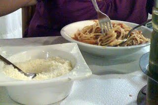 Nous on avait l’air de deux cons, stressés, qui avaient faim. Elle apporte l’assiette 1 (spaghetti)…