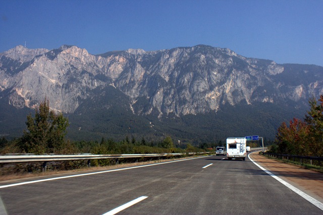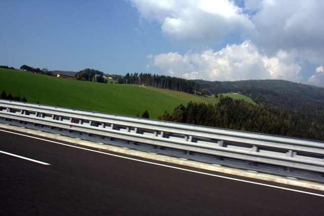 Dès notre entrée en Autriche, il a fallu nous procurer (arrêt dès la frontière) un droit de passage pour les routes d’Autriche. 7,5 euros pour 10 jours, pas trop pire. Il ne semble pas y avoir de routes à péages, ça ferait changement ! (nous avons payé plus de 60 euros pour l’Italie seulement en péage).
