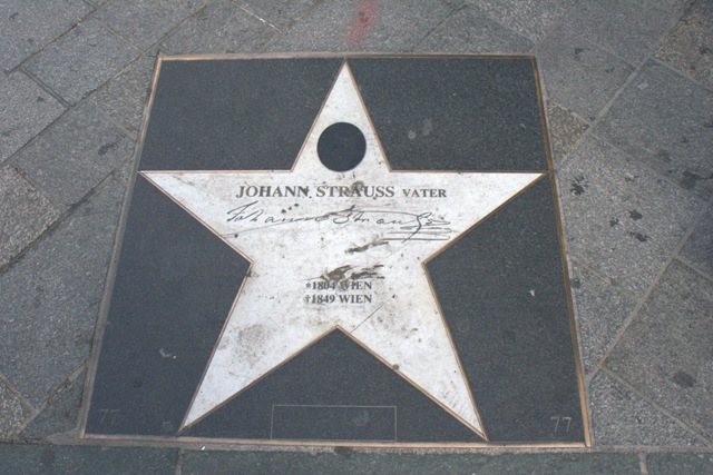 (ici, une étoile sur la rue pour “Johann Strauss I”, célèbre compositeur de valses qui vivait à Vienne).