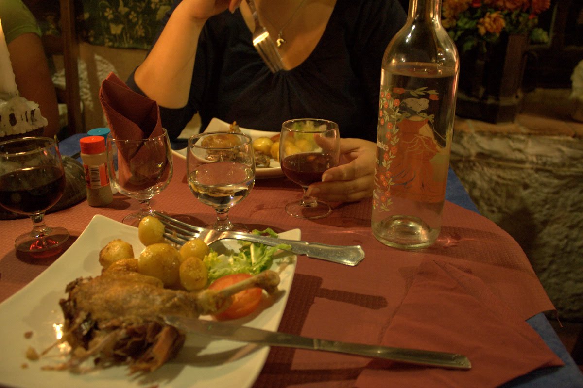 Tout était fermé aujourd’hui à part quelques petits endroits dont celui-ci alors pas de place avant 30-45 minutes.. On continue, on va voir ailleur. On trouve l’endroit que Sarah avait noté, « Ostal des troubadours ». 19euros, table d’hôte. Allez, on se gâte.