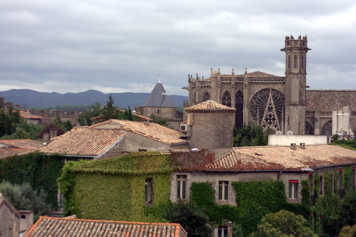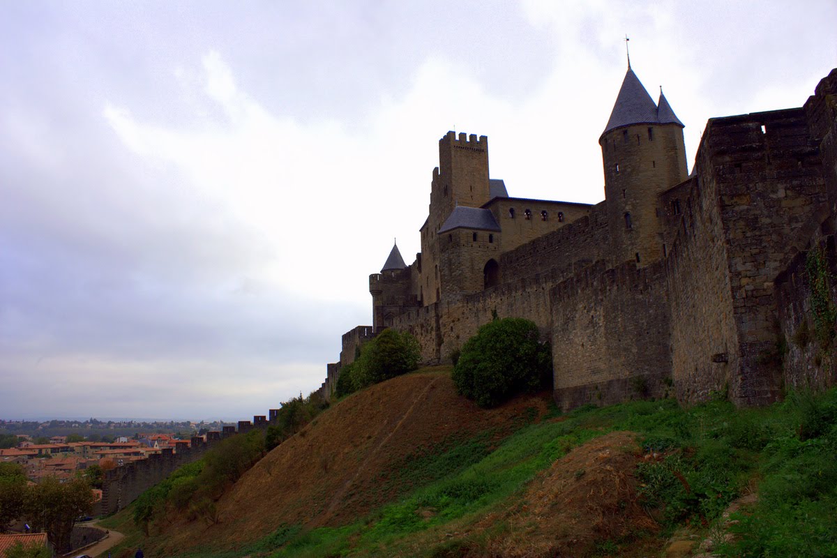 On prend la voiture et on part vers le centre-ville de Carcassonne, puis vers la cité. La cité, c’est un château qui date d’il y a bien longtemps, tout fortifié. Les images qu’on a des livres de chevaliers, c’est exactement ça qu’on voit. Le nom Carcassonne vient d’une histoire où la dame de Carcas faisait sonner les cloches pour on sait plus quoi et quelqu’un aurait dit « Carcas sonne ». On aurait presque pu deviner, sauf que je connais personne qui se nomme Carcas, alors j’y ai pas pensé.