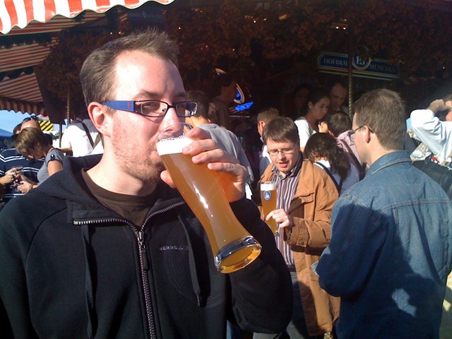 Et on s’est rendu compte que pour aller boire un fameux 1L dans un bock, dans les célèbres tentes, il fallait attendre en ligne pendant plusieurs minutes, peut-être des heures ! Et une fois entré, ils te laissent pas partir sans terminer ta bière trop trop, question de pas avoir des bocks pleins qui se promènent partout, etc. du moins c’est ce que je pensais.