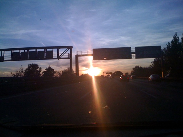 Retour à l’hôtel, encore une fois j’expérimente l’autobahn (qui veut simplement dire autoroute en allemand), mais les gens roulaient moins vite parce qu’on assistait en pleine face à un beau coucher de soleil.