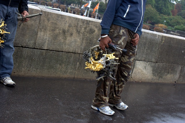Imaginez-vous donc, en marchant vers la tour eiffel (après l’arc de triomphe), je vois un gars se pencher… Il a quoi au bout du doigt ? Un jonc.